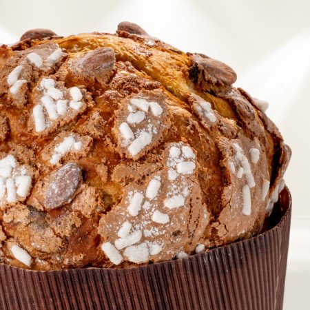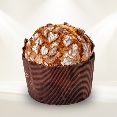 Panettone artigianale prodotto con lievito naturale e senza l'aggiunta di nessun tipo di conservante. Il classico panettone natalizio, ricco di burro e di tuorli con scorze d'arancia candite di altissima qualità e uvetta sultanina. Ricoperto con una squisita glassatura alle mandorle.