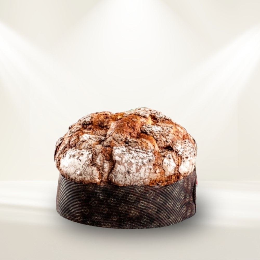 Un panettone artigianale dal gusto e dal profumo unico, nel pieno rispetto della tradizione con al suo interno della granella di amaretto e pezzi di albicocche semi candite.