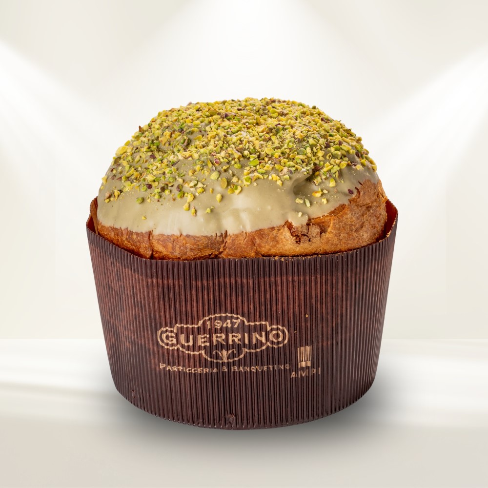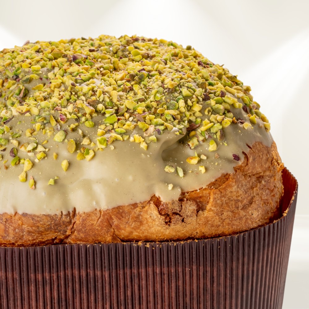 Un panettone artigianale dal gusto e dal profumo unico, nel pieno rispetto della tradizione con al suo interno amarene candite e granelle di pistacchio.
